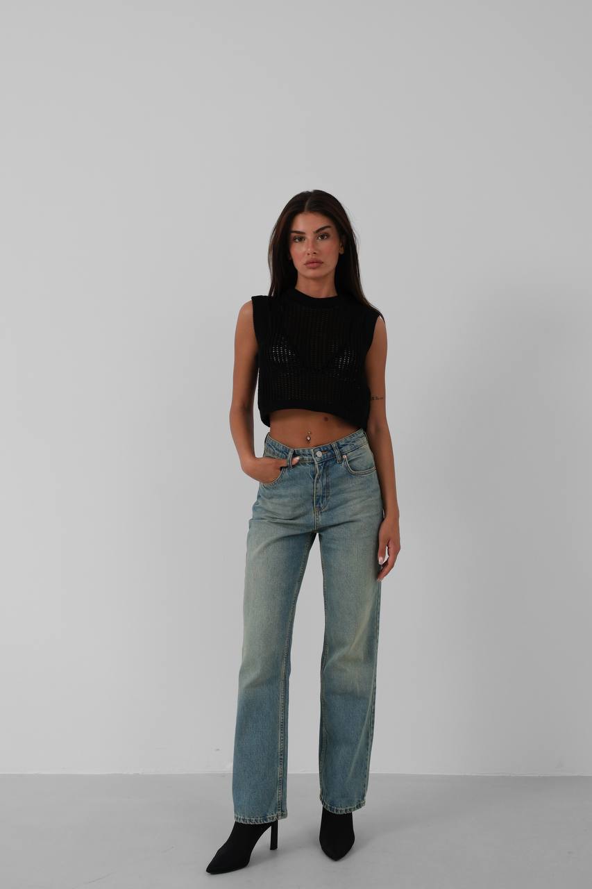 Aliyev Wide Leg Bol Paça İç Göstermez Yüksek Bel Paçası Kesik Kadın Jean - 826